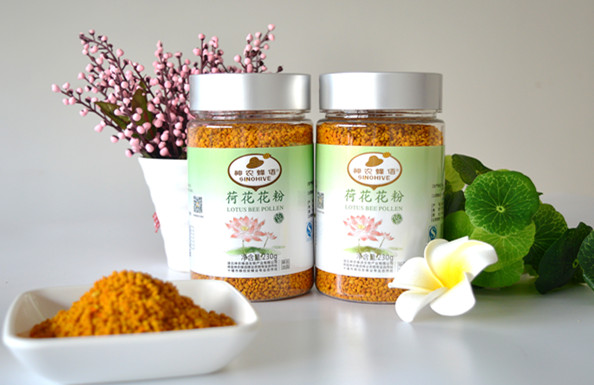 荷 花 粉 ——荷花粉是蜜蜂采集荷花之J華,荷花粉在蜂花粉系列中屬于名貴產品??烧{節和平衡內分泌,促進新陳代謝,使人肌膚更白嫩而富有彈性,容顏更俏麗而富有光澤。