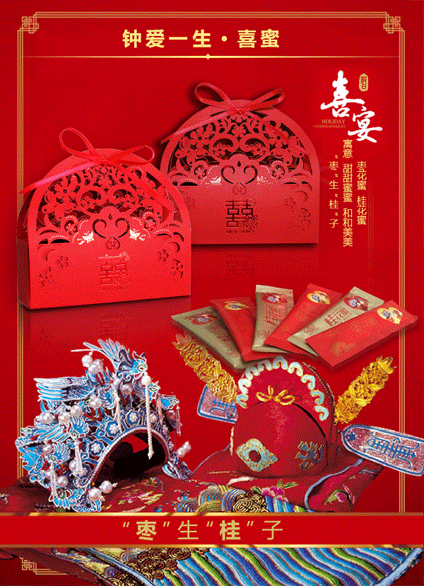 現在婚禮專用的“喜蜜”,包裝多種多樣,讓人見了就心生愛意。一只只造型別致的小玻璃瓶,用紅紗打著美麗的蝴蝶結,心形圖案內還寫著“甜蜜之約”字樣。
