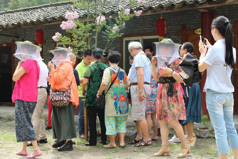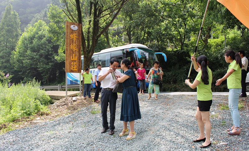 7月17日周日蜂緣山莊迎來武漢僑亞社區的50多位游客觀光考察。10點武漢旅游大巴緩緩駛入我們的眼前,武漢游客一下車立馬被清爽的空氣震驚了,不僅感嘆到:“真是個天然氧吧??!”