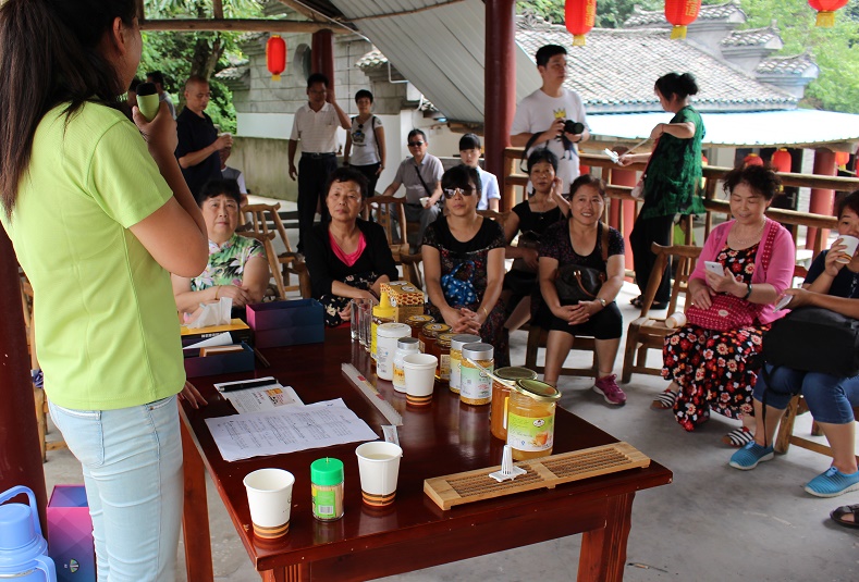 之后,神農蜂語工作人員給大家講解了如何分辨蜂蜜、蜂王漿、蜂膠等品質好壞問題,以及這些蜂品都是怎么來的,武漢的游客紛紛舉手回答互動,現場氣氛十分活躍。