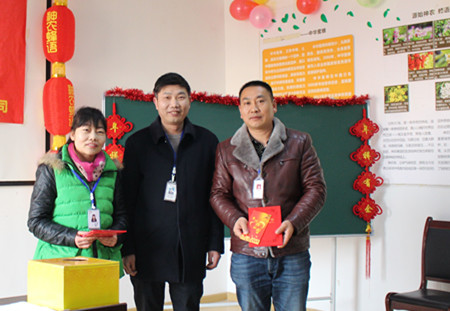 圖為員工領取幸運抽獎獎品