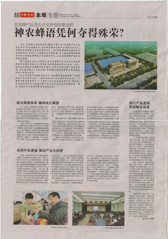 媒體轉載:全國蜂產品龍頭企業評選,神農蜂語憑何奪得殊榮?