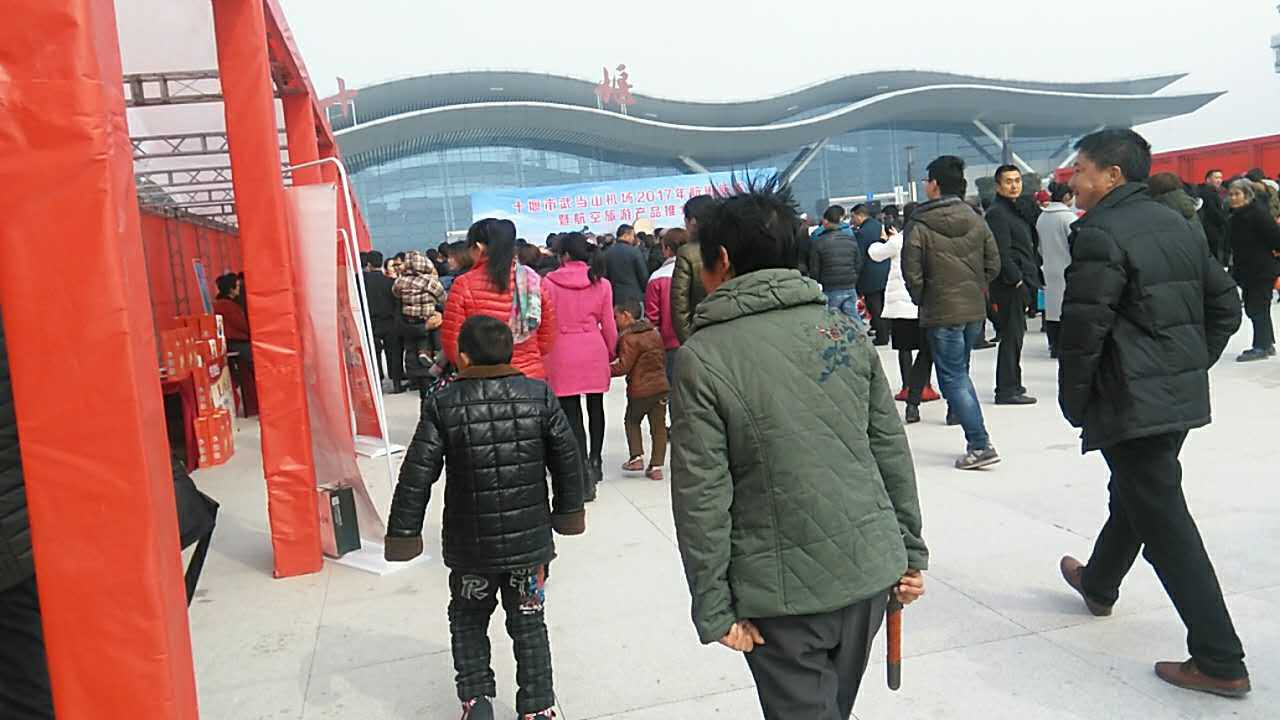 今日,武當山機場一周年之際,在機場廣場舉辦了武當山機場2017航班航線暨旅游產品推介會。十堰市內多家知名企業及旅行社受邀參與推介會,神農蜂語企業做為十堰地區18年的名品蜂產品企業也受邀在現場進行展銷。