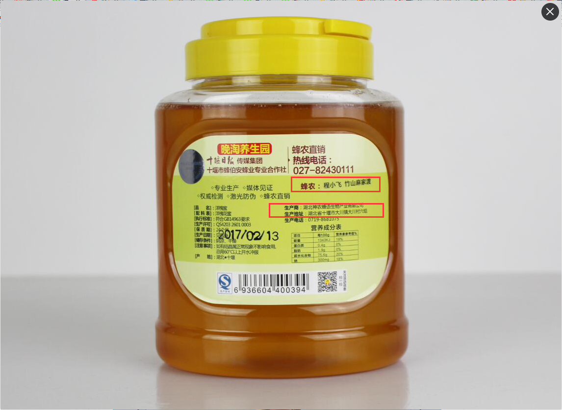 神農蜂語晚淘的每一瓶蜂蜜上都標有養蜂 人姓名、采蜜地,并由武漢晚報、十堰 日報兩大媒體Q程監測釀蜜過程。 每 加工一罐蜂蜜,抽取一個檢測樣本,其 余灌裝封存,加貼十堰日報社封條。 目 前市場上的蜂產品,品P繁雜,真假難 辨。很多之前買過神農蜂語晚淘蜂蜜的顧客,后來都成了回頭客, 品質已得到大家的公認。 正是因為蜂蜜是一家人日常喝的保健品,如果買到劣質,甚至是添加 了其他成分的,不僅沒有保健作用,還會對身體造成“甜蜜的負擔”。 所以也提醒大家,購買蜂產品,一定要仔細辨別,切莫貪圖便宜。