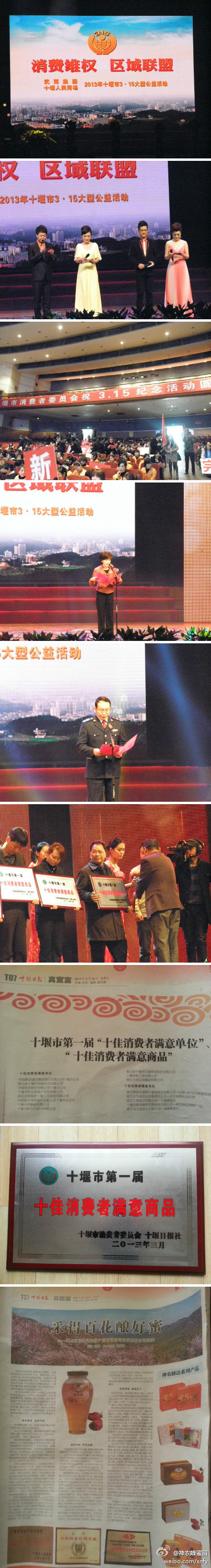 由【十堰市消費者委員會】、【十堰日報社】舉辦的十堰市S屆十佳消費者“雙滿意”評選活動,經過市民投票,主管部門評審以及市民投訴等情況綜合評價,【神農蜂語】公司所生產的蜂產品榮獲十堰市DY屆“十佳消費者滿意商品”,令公司上下歡欣鼓舞,神農蜂語將再接再厲、再創輝煌!