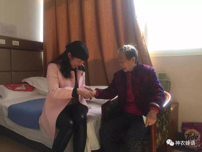 沒想到有幾位老人正好也是甜蜜的粉絲,看到蜂蜜,就打開了話匣子,跟志愿者們聊起年輕時候接觸養蜂、割蜜之類的趣事,比較各種花蜜的特點,話題里都透著一股甜絲絲的緬懷。大家一邊曬著太陽,一邊聊天,幫老人家做做穴位按摩,揉揉肩膀捏捏腿,陪老人們玩兩局游戲,織幾行毛衣,寫幾筆書法,平常的慵懶午后,因蜂蜜而甜蜜,因陪伴而愜意,因愛心而分外溫馨,每個人都將老去,而敬老的愛心會一直傳遞下去,讓夕陽無限美麗。