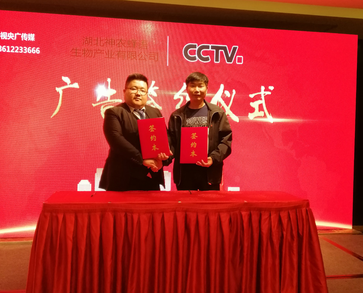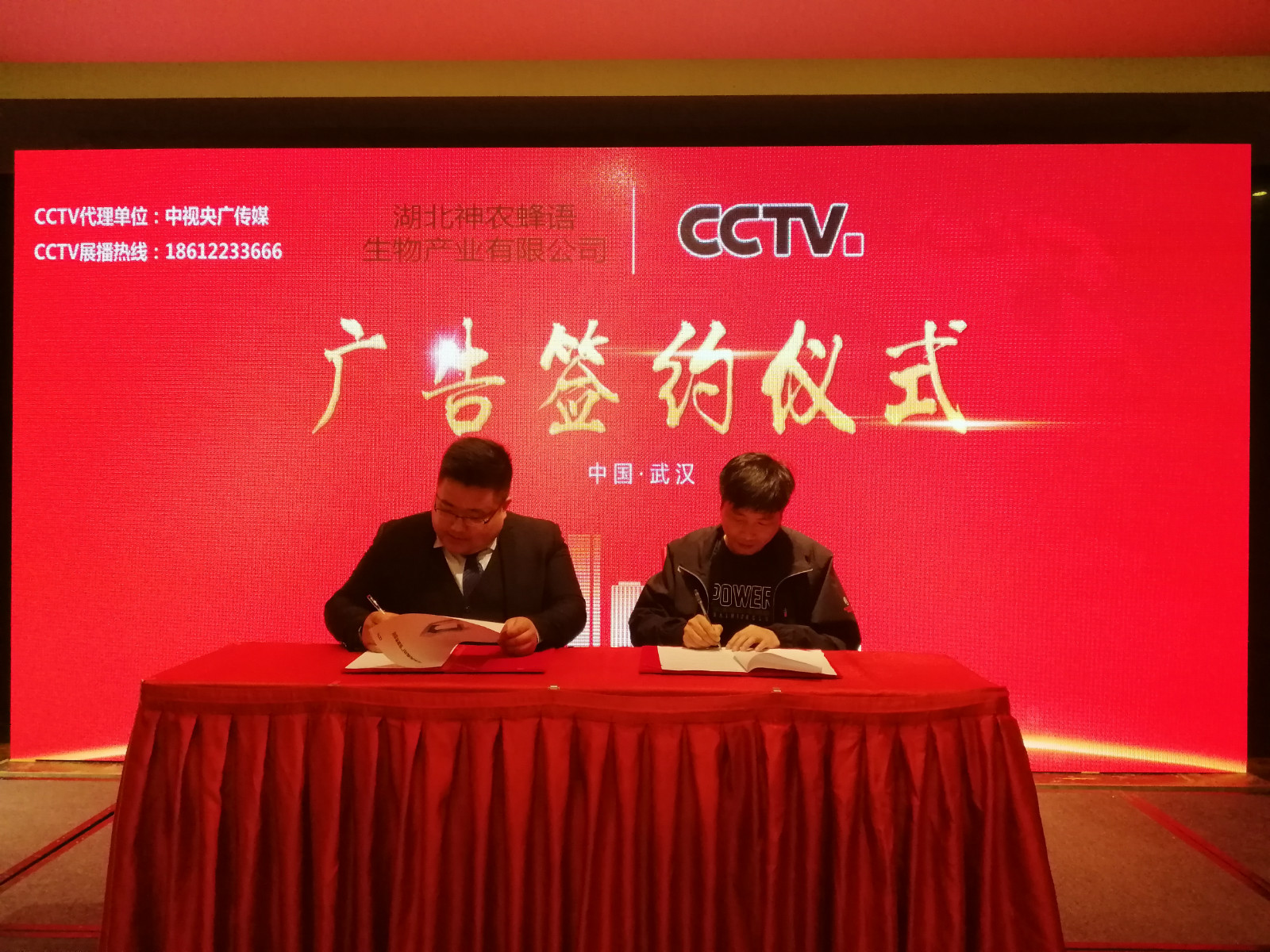 4月12日,公司總經理宋學喜代表神農蜂語與中視央廣(武漢)傳媒有限公司在武漢歐亞國際會展酒店簽約在央視上投放廣告。